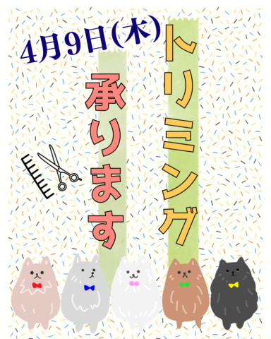 トリミングご予約受付中です お知らせ 2026.03.26 以前ご好評いただきましたトリミング。 4月9日(木)に犬限定でご予約受付中です! 料金はワンちゃんのご様子、犬種により異なりますので お電話にてお問い合わせください。 ご予約もお電話にて承っております。 ご利用お待ちしております! とくろくペットクリニック TEL: 03-3550-8102
